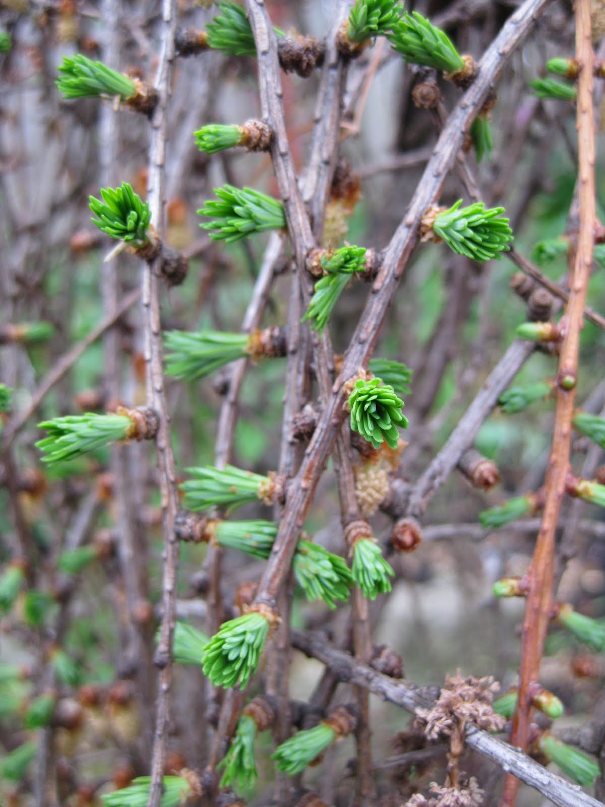 Despite the steady drizzle, all of us donned our rain coats and headed out in to the gardens. Marv, Terry, Marianne, Big John, Larry and I were all on duty and we made the best of the day. The first or[Image]der of business was to plant almost all of our containers with a neat ornamental mustard (Brassica juncea) called 'Brazen Brass' which was featured in a previous blog. We used to have the budget to plant our containers with an early display (pansies, etc.) which would later be transitioned in early June. Times have been tight but we were able to secure a couple hundred of these mustards that I had custom grown for us after seeing them last spring at the Chicago Botanic Garden. They are a cool season plant and the leaves are edible and add a tangy zip to any salad (I think Big John tried it and said it wasn't bad). John, Marv, Terry and Marianne all planted containers this morning and John added many along our lower larch wall. These will really look dynamite by Mother's Day and it will be nice to re-establish early container interes[Image]t and impact again at RBG before we start even planting our summer annuals. Nice shot to the left of the emerging needles of the weeping European larch (Larixdecidua 'Pendula'). Big John also worked on digging out some invasive chives while Marv and Terry installed more butterflies and did a nice job removing large, crumbling rocks from the entrance garden and getting some others in place. Marianne did her cutting display and also continues "swapping out" the new daylily labels. Larry's day was absorbed in the sunken garden getting that water feature up and running and he's also working on modifying our compressors for our pond aerators. He also took the time (thankfully) to bring in our tender plants due to the potential 37 degrees F we may receive tonight. I fertilized most of our lawns, had some meetings and worked with Luis (to the right) on verifying woody plants in the Japanese Garden. Luis is doing a remarkable job of essentially reinventorying all the woody plants in the garden which is no small task. We also saw Mary W., Paul T., Bill, Art and our new fundraising/special events co-worker, Amanda. The big news is that Kay has returned and the weeds rightfully trembled as she headed out in to the shade garden. Needless to say, it wasn't pretty... Below is another shot of the early, dark foliage of 'Britt Marie Crawford' ligularia (Ligularia dentata). Maples have cool flowers too; even boxelders (Acer negundo)! Further below are the dangling flowers of our golden boxelder (Acer negundo 'Kelley's Gold') [Image][Image]We've had plenty of calls regarding our extended tree sale which will be held this Friday and Saturday from 8 am - 2 pm. We are still in need of volunteers on both[Image] days and are struggling to get volunteers for our spring plant sale on May 13, 14 and 15. Our spring sale typically has over 100 slots to fill and we'll be focusing on this very intensely over the next week. There are no shortage of tasks coming up and once the spring plant sale is over, we'll really focus on all of our spring planting. It usually takes between 6 and 8 weeks to get all of our planting completed and that includes the five, sequential work days that we have on Saturday mornings (8 am - noon) over the last two Saturdays in May and the first three in June. We've had up to 50 people planting at one time and we sure get plenty in the ground if we're organized and ready to roll. To the right are the emerging fiddleheads of the maidenhair fern (Adiantum pedatum) which is probably my favorite native fern. Below are some recent shots during our days of April showers.[Image][Image]